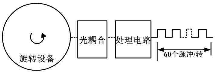 2、轉(zhuǎn)速測(cè)量:通過光耦合及相應(yīng)的處理電路,將轉(zhuǎn)速信號(hào)轉(zhuǎn)換成脈沖信號(hào)輸出,旋轉(zhuǎn)設(shè)備每轉(zhuǎn)動(dòng)一圈輸出60個(gè)脈沖。